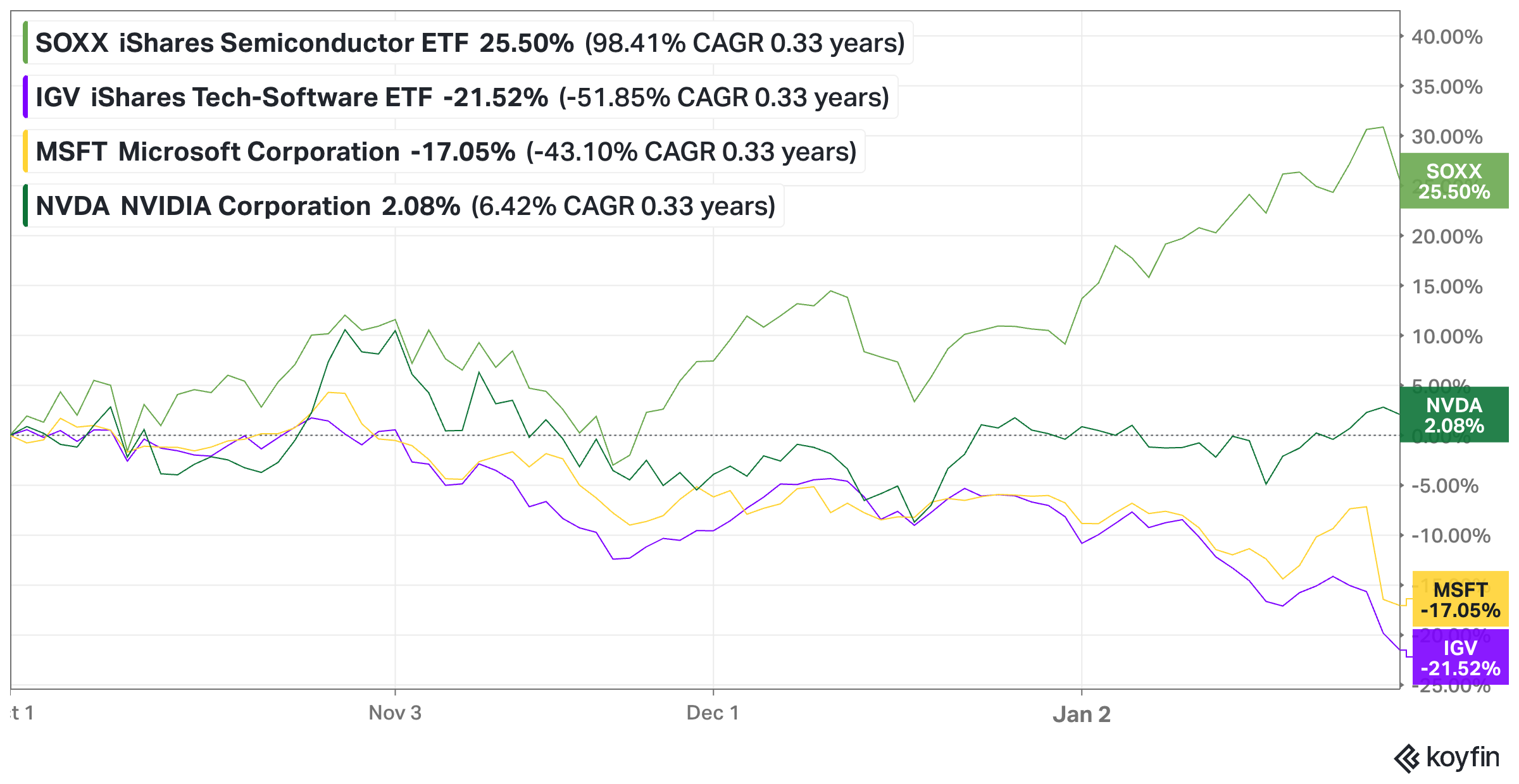 Software terminal value risk: Semiconductor stocks are surging while legacy software businesses are being sold off.